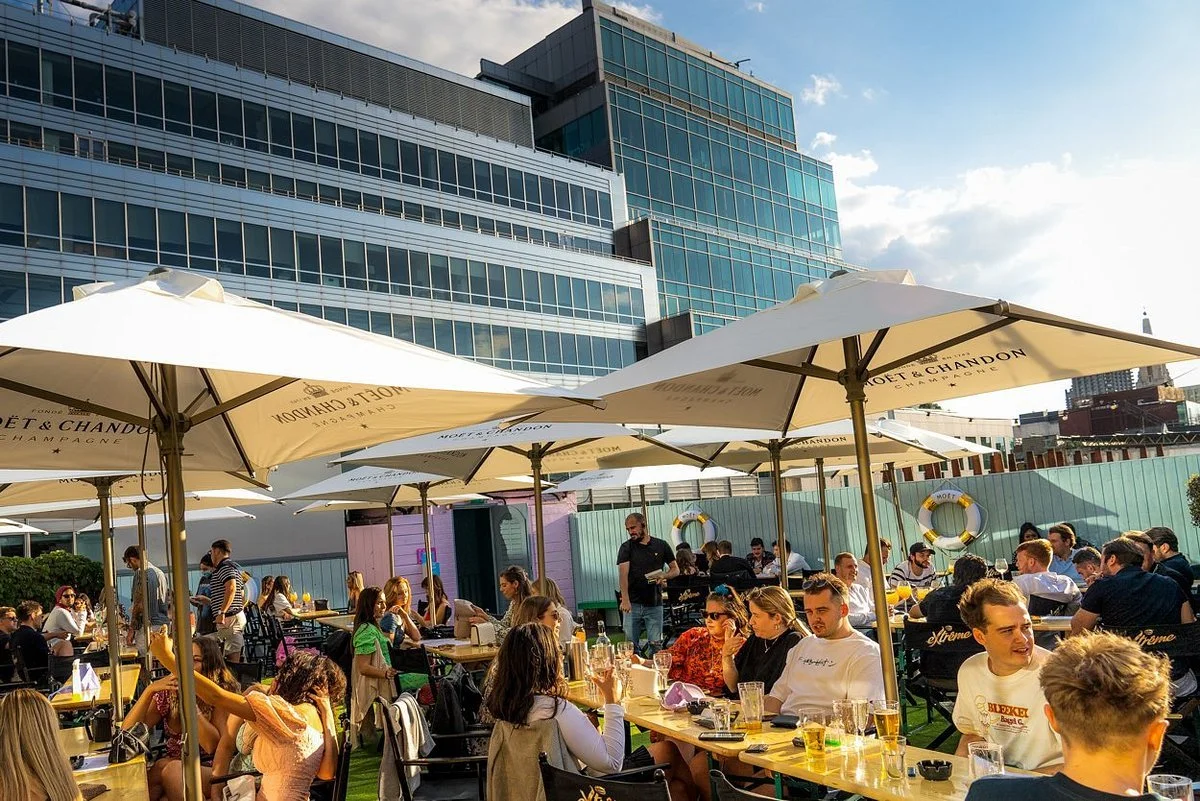 Netil 360 is a Hackney rooftop bar up nine flights of stairs (there’s no lift), but you will be rewarded with breathtaking full-circle vistas of London. Indulge in drinks and dance the night away at the panoramic bar and garden. During the cooler months from October to March, indoor areas are available for booking, providing shelter while you take in the stunning views. For those seeking a well-being experience, saunas are also available.