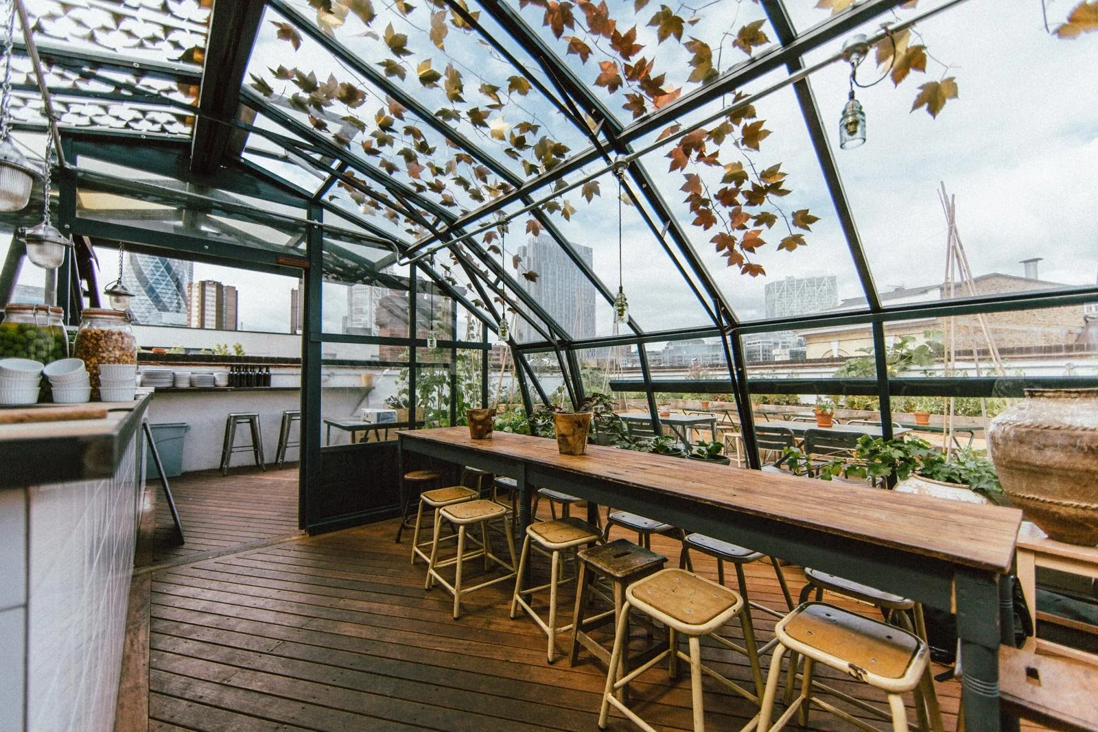 The rooftop is usually also available as a cosy experience during the colder months, when The Culpeper Winter Rooftop offers open fires and warm seating inside the glasshouse.